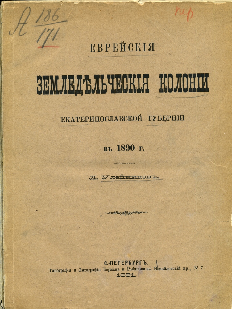 Life on the Jewish Agricultural colonies – success or failure ? Response to the assessments made by Uleynikov and Kankrin in their surveys. by Chaim Freedman. Biographical note and comments by Joseph Komissarouk.