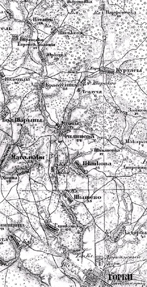 Jewish Colony". Gorki, at the bottom of the map, was the local