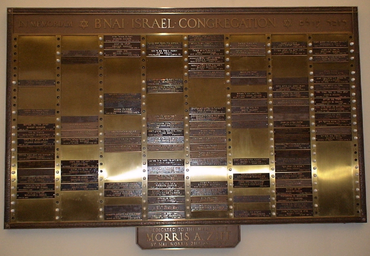 The memorial plaques from Jeannette's Chevra Sholom and Greensburg's B'nai Israel congregations are now in the Temple Emanu-El Israel sanctuary (pictured below).