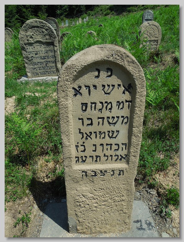 The Jewish cemetery is located outside of town, along the road, on a hillside. It has a fence around it and is well maintained.