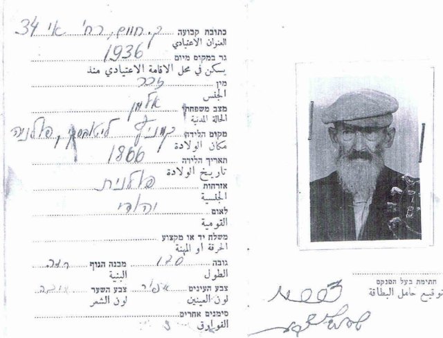 Israeli ID card of Zecharia Shalitzki (page 1)