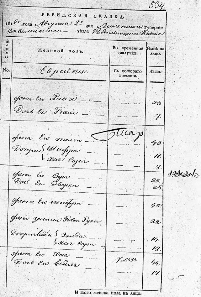 Households 1-5 from the 1816 Revision Census Kobylnik Females