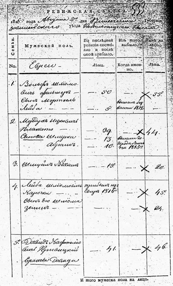 Households 1-5 from the 1816 Revision Census Kobylnik Males