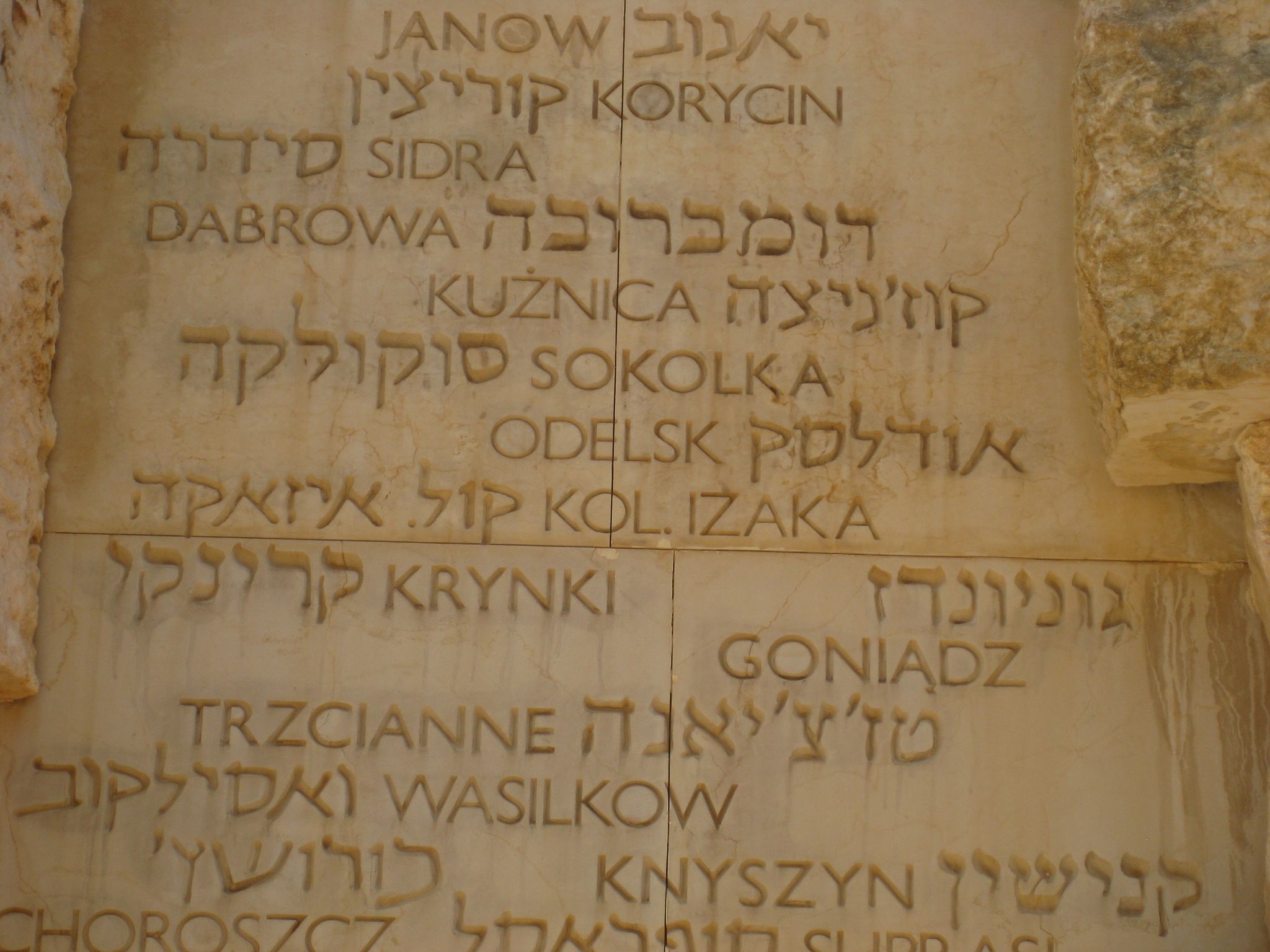 ![]() Kolonja Izaaka included in Yad Vashem's Valley of the Communities among the communities of Grodno Gubernya. Jerusalem. (Photo: Irwin Keller). ![]() Memorial plaque for the Jews of Sokolka, Odelsk and Kolonja Izaaka. Photo from Sefer Sokolka. Copyright © 2011 Irwin Keller