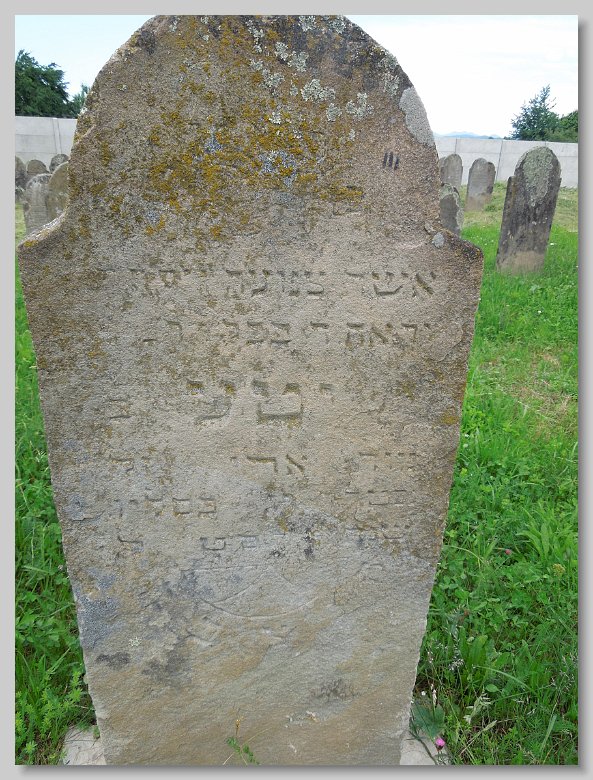 The Jewish cemetery is located in town, behind a house. It has a wall around it and is very well maintained.