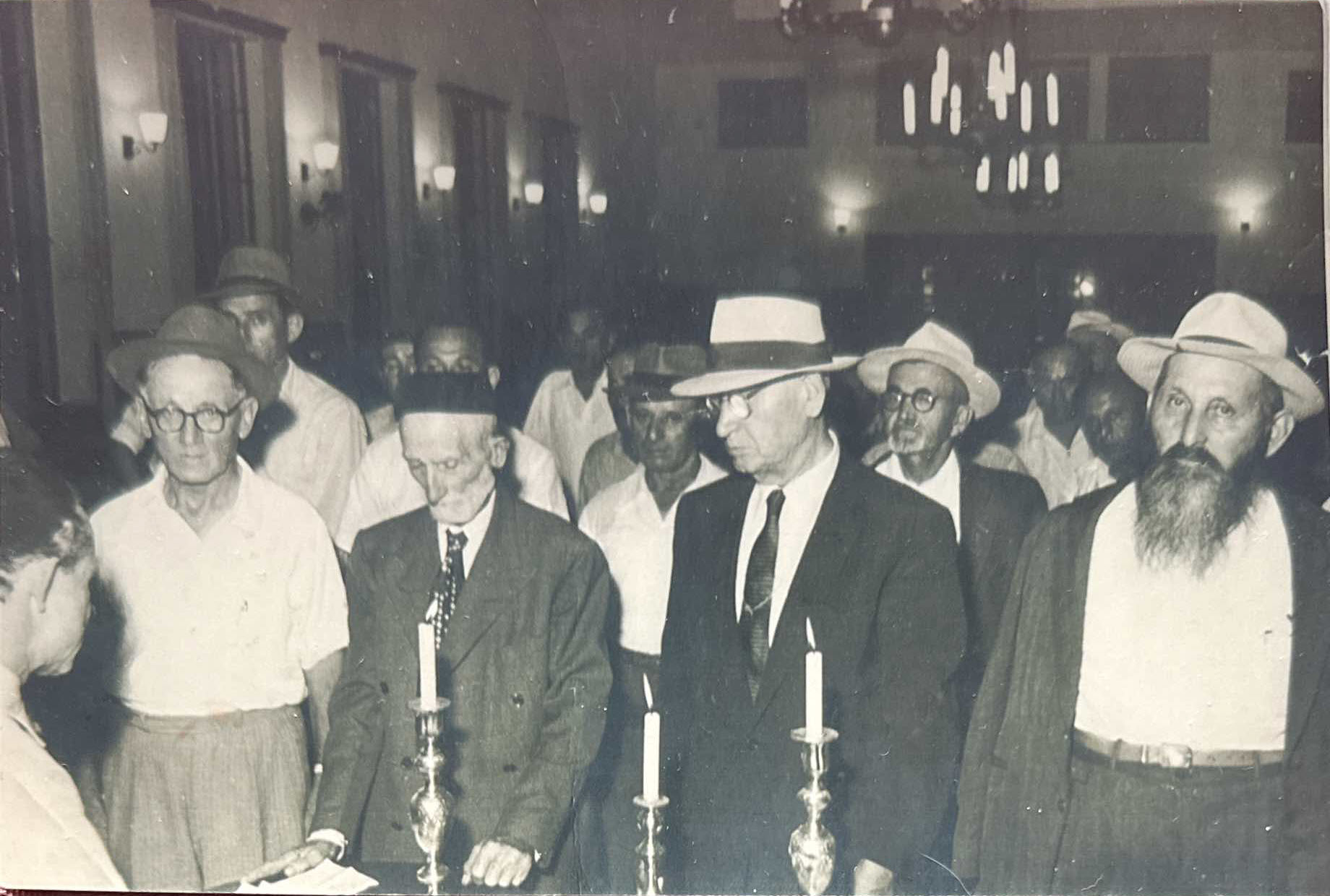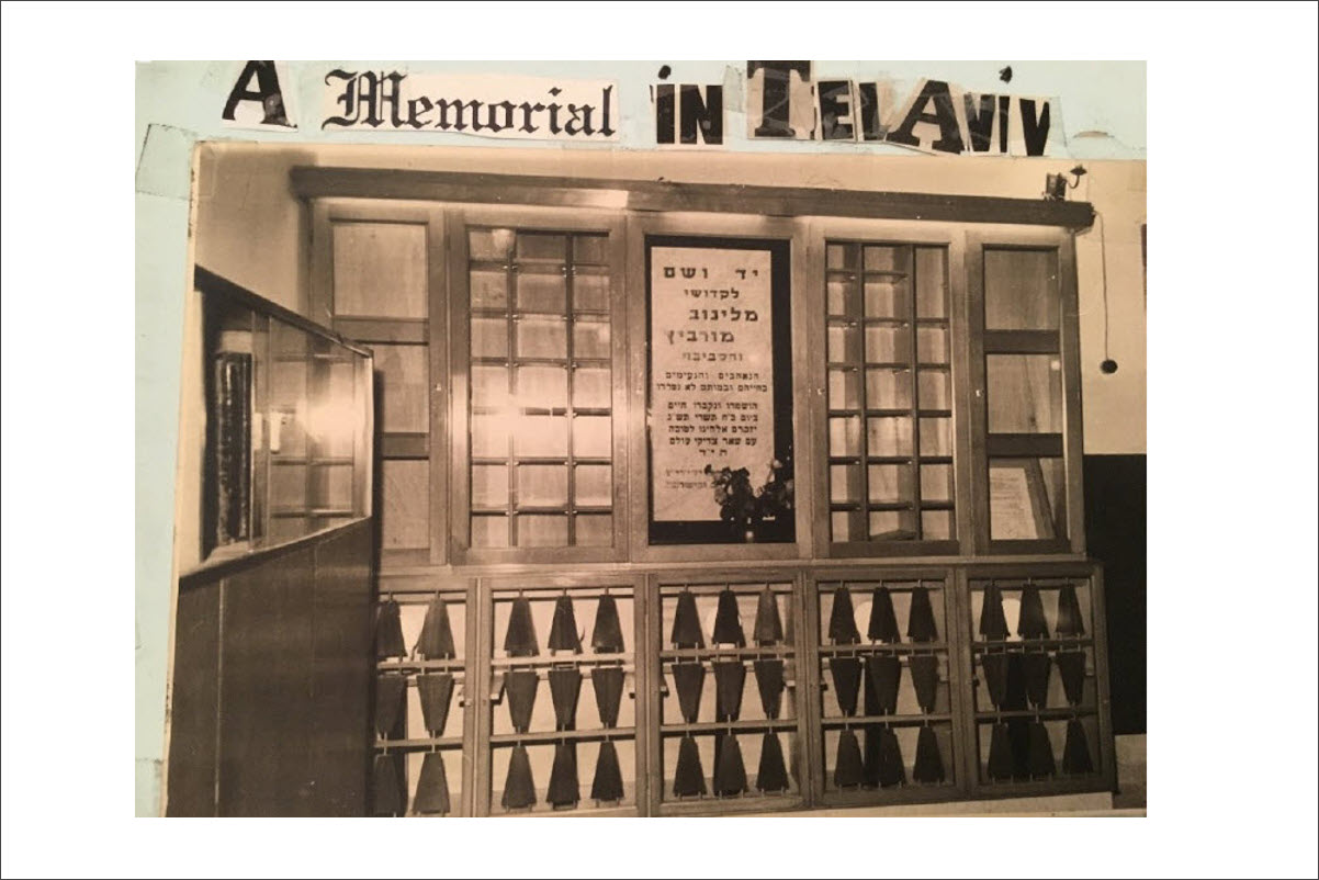 In 1953-1955, Mlynov and Mervits born individuals and their children in the US raised money to support the creation of a memorial plaque in Tel Aviv. Records kept in the Fishman family in Baltimore record the names of the donors in America who supported the plaque's creation. Most were either born in Mlynov or Mervits, or were first generation children of immigrants from those towns. As captured in two photos, some of the Mlynov and Mervits-born individuals and survivors from the US and Israel gathered in Tel Aviv in the fall of 1955 at a commemoration ceremony where the plaque was installed. The story of the commemortion plaque, photos and records of the donors can be downloaded here.