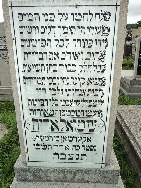 Shmiel ben Duvid Yacov WEISZ d. 14 Cheshvan 5692 (25 October 1931)