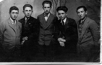 A group of Naishtot youth From right: Yosef Ziman, Hirsh Rozenblum, Kalman Landau, ----, ----. After WW1, local Jewish youth established a Yiddish library. In 1925 this library was transferred to "Libhober fun Wissen" (Fans of Knowledge) society ultimately accumulating a collection of about 1,100 books. In addition to the library the town boasted an evening school, and was known to organize literature and drama evenings, lectures and a drama group performing plays in Yiddish. The Jewish theaters of Kovno seldom visited Naishtot. Not only was there a Yiddish library but there was also a Hebrew Library, founded by the "Eretz Yisrael HaOvedeth" league. In the middle of the 30- ties the "Hekhalutz" and "Sirkin Society" drama group was formed, which on occasion performed a light repertoire of Yiddish plays