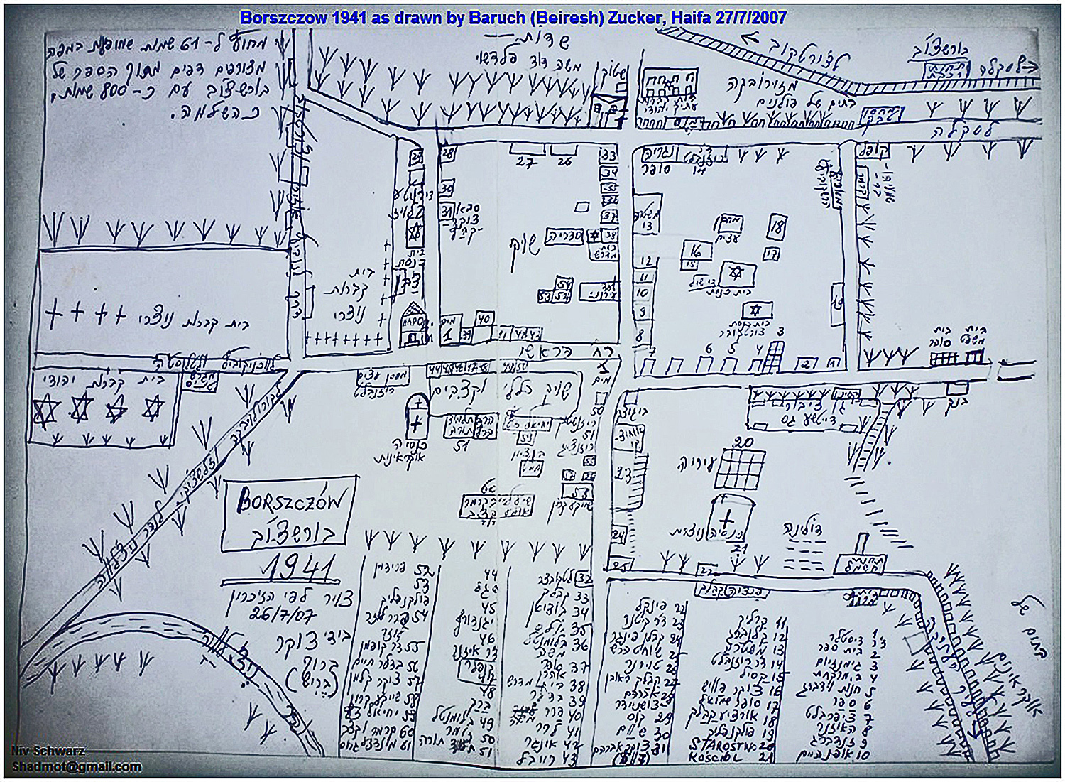 Translation to English of 1941 Map of the Jewish area of Borszczów by Niv Schwarz