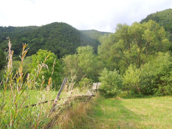 As mentioned above, the Ust'-Chorna cemetery is located on the mountainside, across a river. When we entered the hamlet, we asked a "Babushka" where the cemetery was. She pointed across the river. Since we didn't see a bridge or a foot bridge, we asked her how would we be able to cross the river. She then escorted us across the street to a house where a 90 year old man lived and he agreed to take us across the river. He mentioned to us that he travels this way across the river—two times a day—for firewood. When we arrived in his back yard, next to the river bank, we were very surprised to see how he crosses the river—on a high wire.