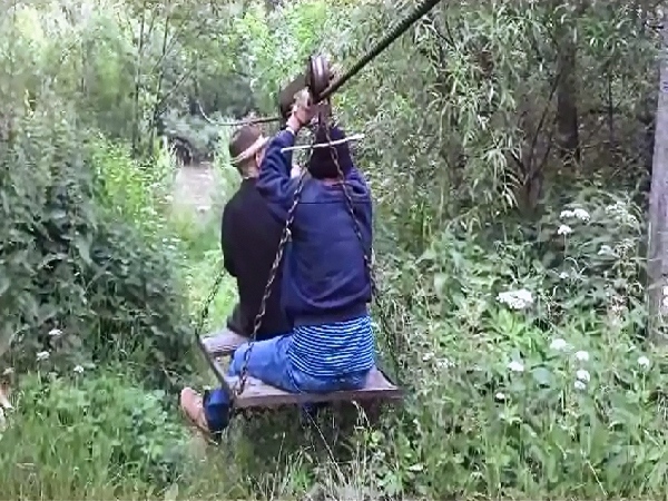 Following are two photographs and and a short video of our crossing the river by manually pulling on the cable.