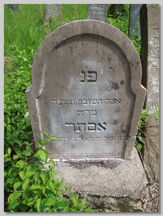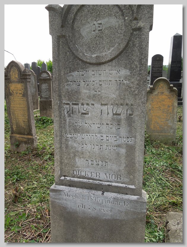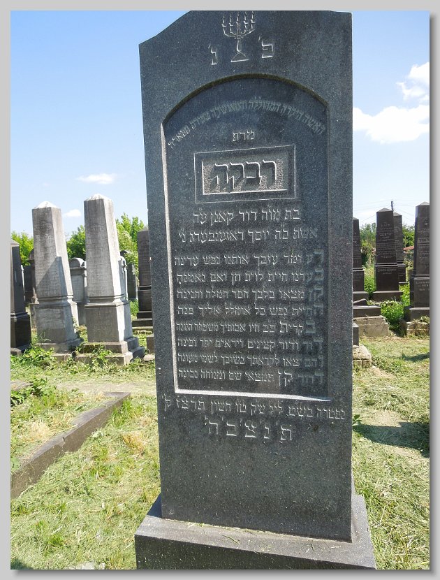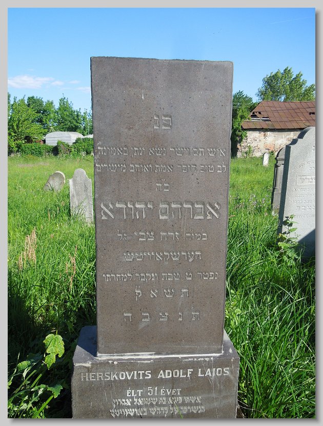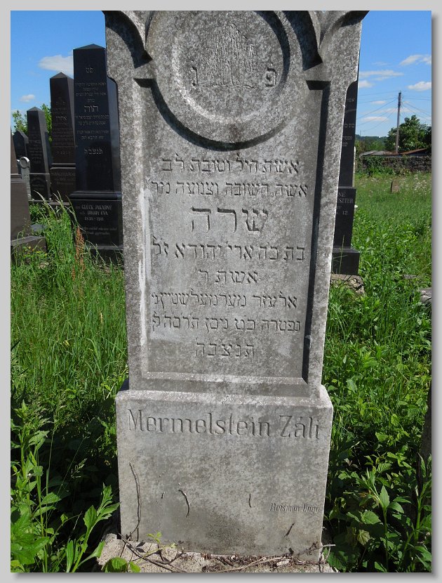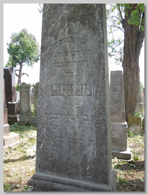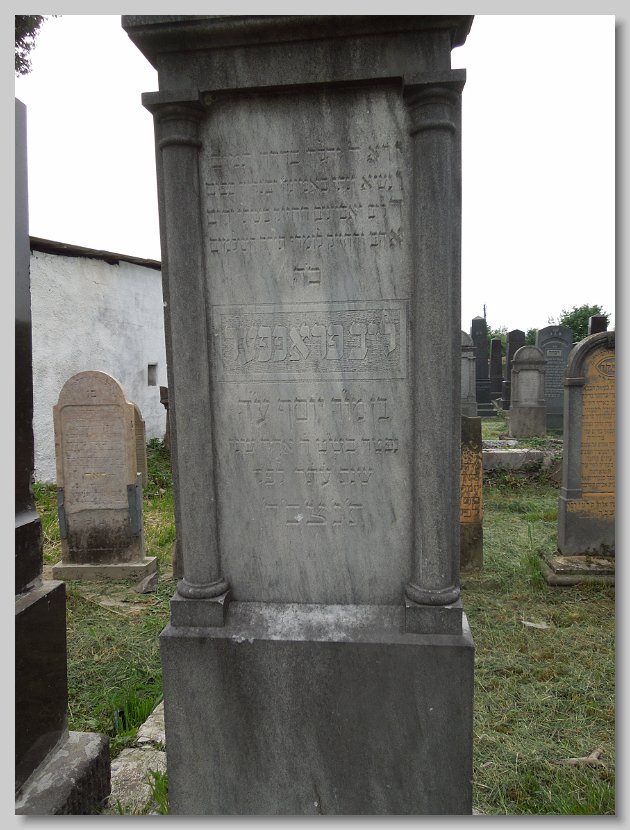 Fradel (Fani) bat Yitzchok Arya LERNER d. 22 Cheshvan 5669 (16 November 1908) Age: 76; Wife of Lazar Yitzchok GLUCK Esther Chana (Eszter) bat Yitzchok Arya LERNER d. 16 Adar II 5669 (09 March 1909) Age: 73; Wife of Mendel [Emanuel] SCHENFELD Sara (Szeren) bat Samuel Zanvil GRUNFELD d. 8 Nisan 5688 (29 March 1928) Age: 44; Mother's name: Basha; Wife of Leib [Lipot] ROSENFELD Frimet Malka bat Yosef David JUTKOWITZ d. 9 Cheshvan 5700 (22 October 1939) Mother's name: Zissel; Wife of Hersh Ber Yakov Chaim (Zoetan) ben Meir SZEKELY d. 22 Sivan 5676 (23 June 1916) Age: 15; Mother's name:Chana SCHLESINGER; Boucher Rachel Esther (Roza) bat Moshe Yehuda ROTH d. 3 Tishri 5674 (04 October 1913) Born: 1856; Wife of Nisen [Ignatz] LENDVAI Chava (Eva) bat Mordechai Yakov BRODY d. 13 Adar 5671 (13 March 1911) Born: 1839; Wife of Chaim [Jakab] GLUCK Gitel (Katalin) bat Burech Elya MEISELS d. 7 Nisan 5699 (27 March 1939) Born: 17 March 1856; Wife of Shulom [Zsigmund] KLEIN Chaya (Hani) bat Menachem KNISCH d. 27 Kislev 5683 (17 December 1922) Wife of Yehuda Yosef [Jozsef] KESZLER Rivka (Regina) bat Yeruchem Fischel SAMUNOVITS d. 13 Tamuz 5693 (07 July 1933) Born: 1850; Wife of Adolf GANZFRIED Meir (Miksa) ben Eliezer Yitzchok GLUCK d. 12 Sivan 5693 (06 June 1933) Born: 14 Sivan 5613; Mother's name: Fradel Avruhom Yitzchok (Adolf) ben Shulom ROSENFELD d. 18 Adar 5696 (12 March 1936) Age: 55; Mother's name: Rachel Margit bat illegible ROSENFELD d. illegible (illegible) (Dr. Elek (Elya)) ben Chaim Samuel SAJO d. 12 Cheshvan 5688 (07 November 1927) Born: 17 July 1861; Mother's name: Leah SCHWARTZ Also a Memorial for those murdered in Auschwitz: Dr. Elekne SAJO, Ilona (née SAJO) STEINER and Magdika SAJO Reizel (Rezi) bat Moshe HaKohen BURGER d. 28 Elul 5680 (11 September 1920) Wife of Yitzchok [Ignas] KLEIN Chaya Rachel (Roza) bat Shaya Yehuda BERKOVITS d. 26 Sivan 5683 (10 June 1923) Wife of Meir [Markusz] WALKOVITS Zissel (Zali) bat Yosef MARMORSTEIN d. 22 Kislev 5679 (26 November 1918) From Lekart; Wife of Moshe [Mor] ROTH Hindel (Johanna) bat Meir Efroim FISCHER d. 20 Shevat 5699 (09 February 1939) Born: 5619; Wife of Abraham Yitzchok ADLER Frimet (Emma) bat Elchonon Shimshon ROTH d. 7 Adar 5699 (26 February 1939) Wife of Zvi [Herman] ROSENBAUM Chaya Hena (Hani) bat Binyamin EKKER d. 25 Shevat 5672 (13 February 1912) Age: 63; Wife of Eliezer [Ludwig] GROSZ Chava Serel (Szerena) bat Mattes SCHUH d. 25 Tishri 5670 (10 October 1909) Age: 26; Wife of ____ EISLER Miriam Leah (Mari) bat Moshe Yehuda ROTH d. 18 Tevet 5671 (18 January 1911) Age: 59; Wife of Avruhom Mordechai [Marton] MOSKOVITS Yisroel (Jozsef) ben Yehuda HIRTENSTEIN d. 19 Iyyar 5675 (03 May 1915) Born: 1839 Esther (Netti) bat Ezriel STRAUSS d. 14 Tevet 5678 (29 December 1917) Born: 1846;Wife of Yehuda HIRTENSTEIN Rivka (Rebecka) bat Zev GEIGER d. 20 Shevat 5652 (18 February 1892) Born: 1802; Wife of Samuel Yakov ENGLENDER Yachet (Henriette) bat Samuel Yakov ENGLANDER d. 10 Adar 5659 (20 February 1899) Wife of Moshe [Mor] FERDERBER Yisroel Isser (Ignacz) ben Yehuda MOSKOVITS d. 11 Sivan 5670 (18 June 1910) Born: 1826; Mother's name: Feiga Samuel Fischel (Dr. Sandor) ben Eliezer HaLevi GREEN / HORVATH d. 24 Cheshvan 5669 (18 November 1908) Age: 52; His surname HORVATH is different from the father Nechuma (Emma) bat Arya HaLevi HECHT d. 29 Tamuz 5693 (23 July 1933) Age: 60; Born: 5693; Wife of ____ GOLDBLATT Miriam (Mariska) bat Michael STEINHART d. 20 Adar I 5687 (22 February 1927) Age: 59; Wife of Aron [Arnold] MOLNAR Aron Arnold ben Yisroel Isser MOSKOWITZ / MOLNAR d. 24 Nisan 5695 (27 April 1935) Age: 80; His surname MOLNAR is different from the father Avruhom (Adolf) ben Yisucher Dov TELTSCH d. 21 Adar I 5687 (23 February 1927) Born: 1864; Mother's name: Miriam