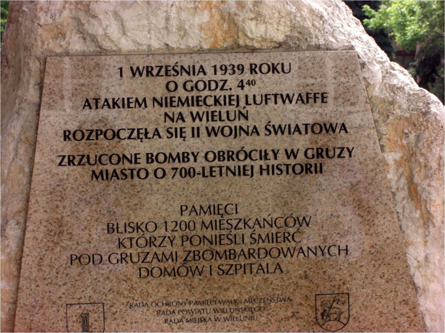 plaque stating that WWII began with the bombing of Wieluń