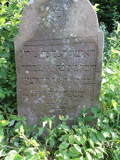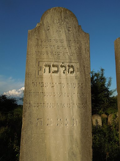 The cemetery is located on the left side of a farm road that runs off the main road a few kilometers past the commercial part of the town (2 stores). From the main road, turn left onto the farm road which runs along a cornfield that is on the right. The cemetery is about 300 feet from the main road. On the right side of the road in the distance you can see the steeple of the Orthodox church and if you get to a Christian cemetery on the left side of the road, you've gone a bit too far. Enter the Jewish cemetery by walking a short distance on a path of vegetation that emerges into the cemetery proper.