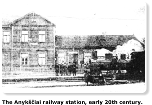 The Anykščiai Railway StationConstruction of the Narrow Gauge Railway NetworkIn the 1860s the government of Tsarist Russia, which at the time included the region now known as Lithuania, began to show an interest in narrow gauge railways, and in 1870 dispatched a delegation to England to study its narrow gauge railway system. The first phase of construction of the Lithuanian narrow gauge railway network was implemented as part of an overall plan with the building of a 71 km (44 mile) 750 mm gauge line, completed on November 11, 1895. This line ran from Svencioneliai some 70 km northeast from the Lithuanian capital of Vilnius to Pastoviai (Pastavy), now in modern day Belarus. During this initial development period the Russians built both 750mm and 600mm gauge railways. Two years later construction began on a 144 km-long (90 mile) line between Svencioneliai and the northern Lithuanian city of Panevezys. The principal purpose of this line was to link two independent international broad gauge railroads together. Two stations, one at Utena, the other in Troskunai, were built along it, together with 39 stone culverts. The line boasted a total of 99 wooden bridges, the longest an impressive 100 m (109 yards) which spanned the river Sventoji close to the northern town of Anykščiai. Service began on September 28, 1899. The line was formally inaugurated on May 13, 1901. At the start of the 20th century plans were made to construct a line between Troskunai and Ukmerge, but this segment was never realized. A total of eight water tanks were built along the line, seven capable of providing up to 4,398 gallons at Utena, Troskunai, Panevezys, Saldutiskis, Trumbatiskis, Anykščiai and Raguvele respectively, and one more at Svencioneliai, with a capacity of 10,555 gallons. The maximum speed that was safely attainable on the line was 25 vph (versts per hour, one verst being equivalent to 1.067km, or 0.633 miles). The cost of building 1 km of railway equaled 17,100 roubles. The total cost of the two lines was a staggering 4.3 million roubles.Anykščiai Station, Water Tower, and BridgeThe Anykščiai railway station was built in 1901. The building's design was similar to the architectural style common to other czarist-era railway stations. Its facades are authentic to the era with its roof, windows and doors decorated with carvings. Today, the Anykščiai railway station is a museum and is little changed from a century ago. The largest room of the station is on the ground floor and was used as a passenger waiting lounge and booking office with a ticket window. Employee space occupied either side of the waiting room and consisted of the station manager's office, a booking office, freight office, the watchman's room, communications room and a storeroom. A three-room flat was on the second floor. The station had its own water fountain with the water pumped directly from the Sventoji River.The old water tower that used to service the steam locomotives still survives. Water from the Sventoji River was pumped into its 4,400 gallon storage tank. Locomotives bound for Panevezys were filled from the water tower and those headed for Švenčionys were serviced from the water pump that was located between two passing tracks. The nearby riveted steel bridge was constructed in 1936 to replace the old wooden one. In its current configuration, it is 96 m long, 4.5 m wide and 12 m high. (Source: The Union of Supporters of the Lithuanian Narrow Gauge Railway,)Think about it: for many of our ancestors who left Aniksht and surrounding shtetlach for a better life in the Goldene Medina (the Golden Land), their long and arduous journeys began right here at this very train station. What thoughts raced through their minds as the locomotive began chuffing, blew its whistle and slowly pulled away leaving their loved ones behind on the station platform? What makes this train station so special? It was here, at this very place, that the exchange of warm hands and wet tears was slowly transformed over time from a heart-breaking, gut-wrenching experience to a long-faded family memory. History