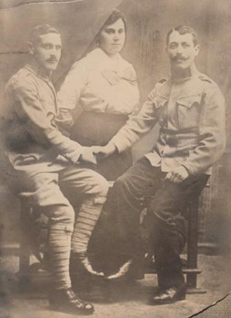 Dawid Balbirer (far left) (c.1918-WWI) woman in center & soldier on right (unknown at this time)