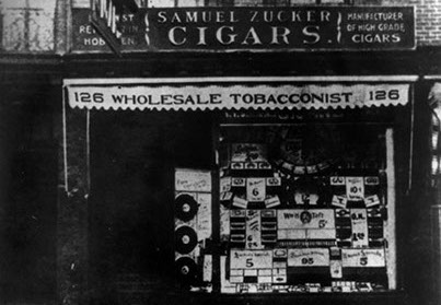 Note the advertising cards in the window for 5 cent cigars. Same would have sold cigarettes, pipe tobacco and chewing tobacco as well.