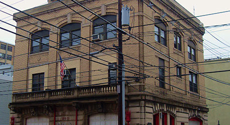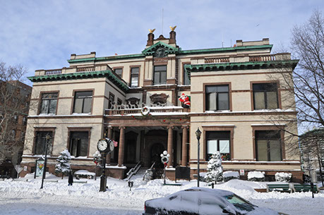 The public library which opened in 1897 built by city of Hoboken on land donated by the Stevens family