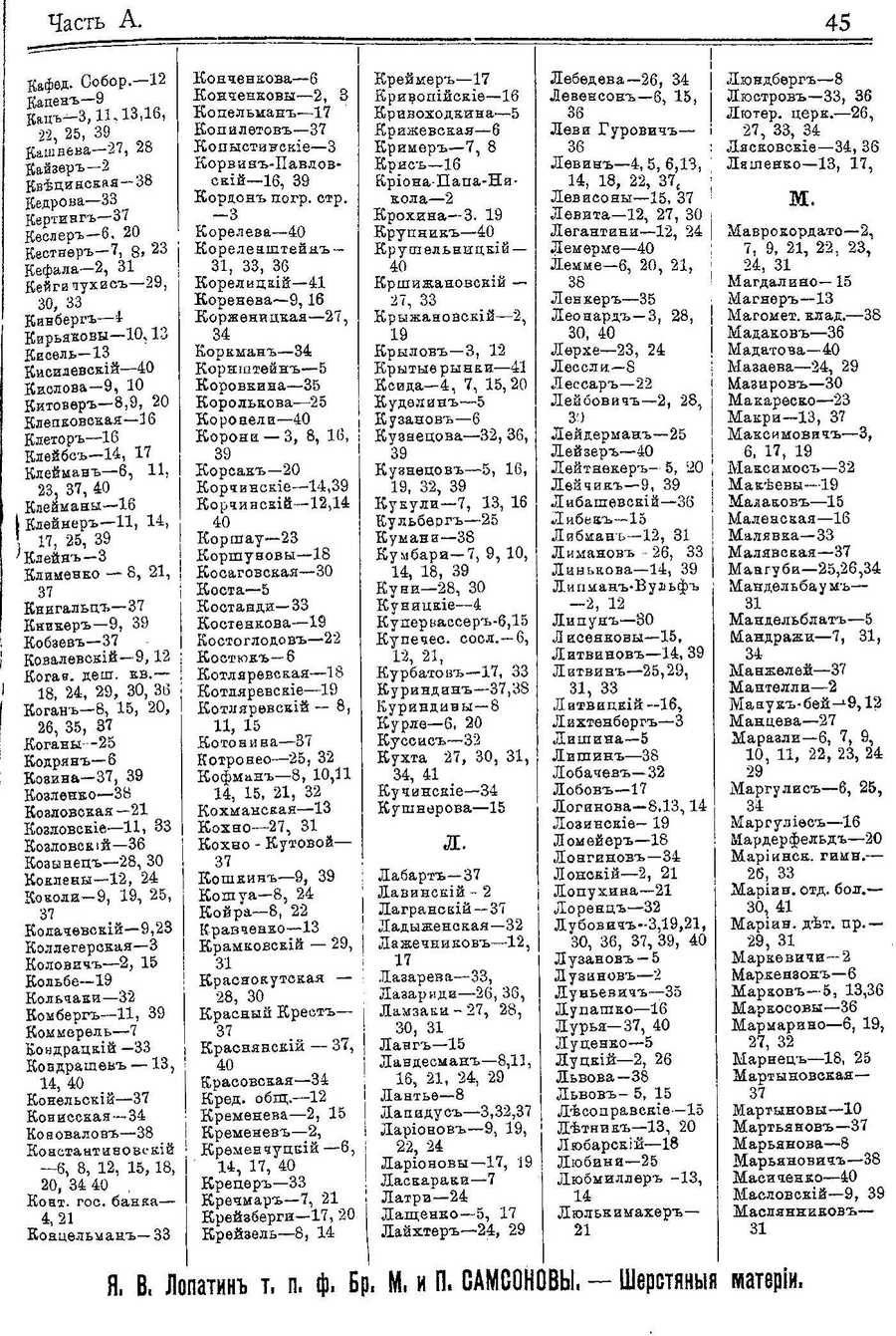 Alphabetical Index of Slobodka-Romonovka