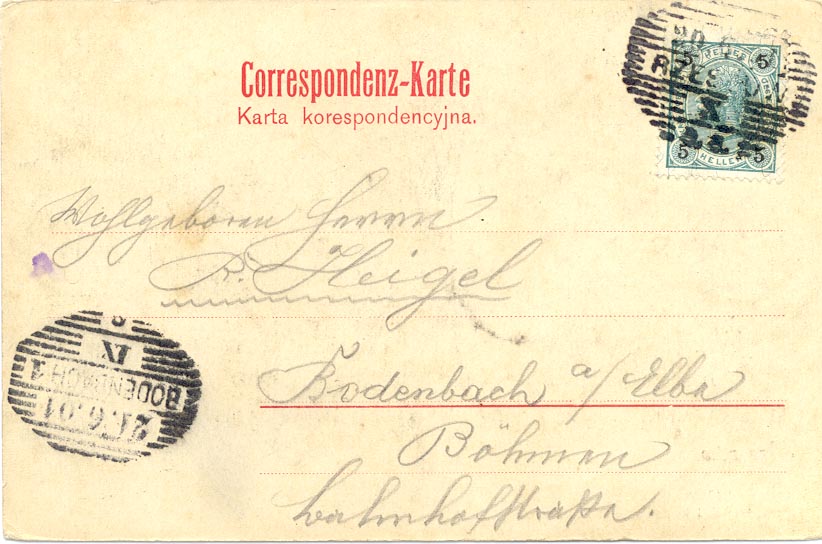 Stamped by the receiving post office in Bodenbach : 21. 6. 1901.