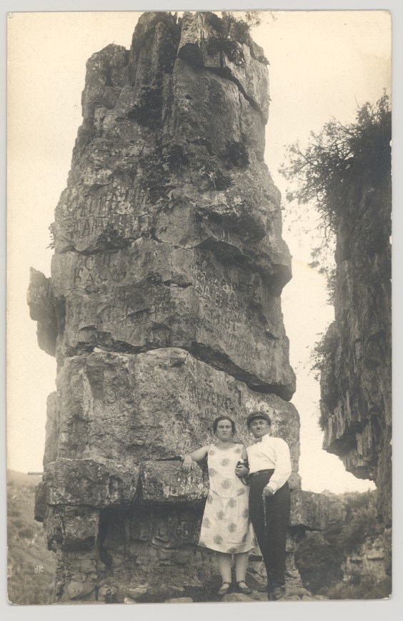 The following photo came from the photo album of my grandfather (Eliahu Youngstein né Young). He left Alesandrosvsk, Ukraine in 1919 and ended up in New York in 1921. In the later 1920s, his relatives back home sent him a collection of signed family photos of all the relatives. This photo was amongst those. I have had the note on the back translated: "To dear brother Ilusha from his sister Zina and Aaron [Orlovich] Nov 7, 1927, Simferopol, Crimea."