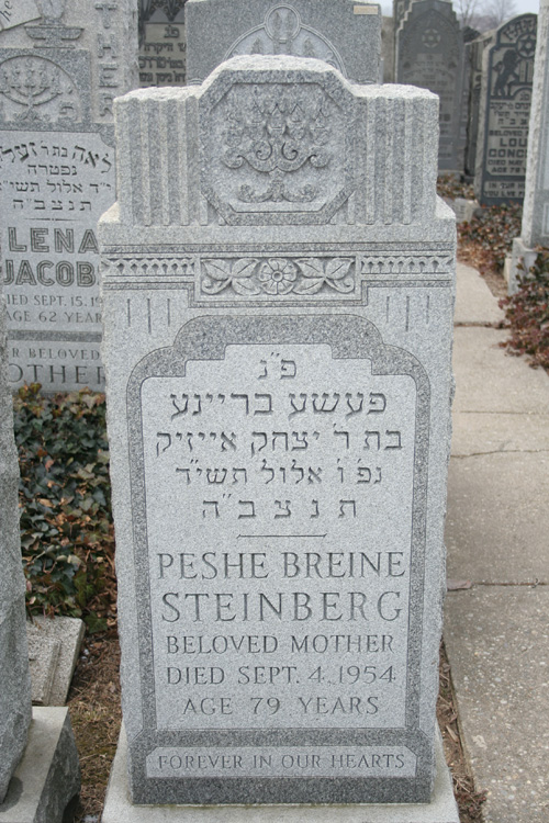 | 11-13-F-9-11 | STEINBERG | Albert | 1902 | 17-Jun-1974 | 72 | אברהם ב'ר פסח | Avraham ben Pesach | STEINBERG, Peter | STEINBERG, Bessie | |||||