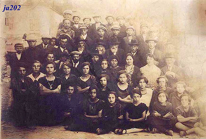 The yard of the Hebrew school at Jagielnica. School Founders Committee, pupils, an American donor.