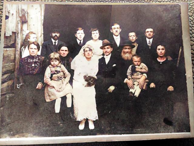 While you’re waiting for my paper research, I’m passing along some pictures of my great grandparents, Kopel Kot and Freyda Kot Rotinsky (probably actually Rudnitsky or a variant spelling.) The other picture is them at a wedding, obviously with family, although no one knows who the other people were. I automated and colorized the pictures the best I could. Amazingly, we discovered that my sister looks very much like Freyda. I’ll label the pictures of my grandmother, Ida Cott (neé Zlata Kot) and her sister Anna. Physically, they were short people, with Ida being all but 4’9” , 1.448 meters.